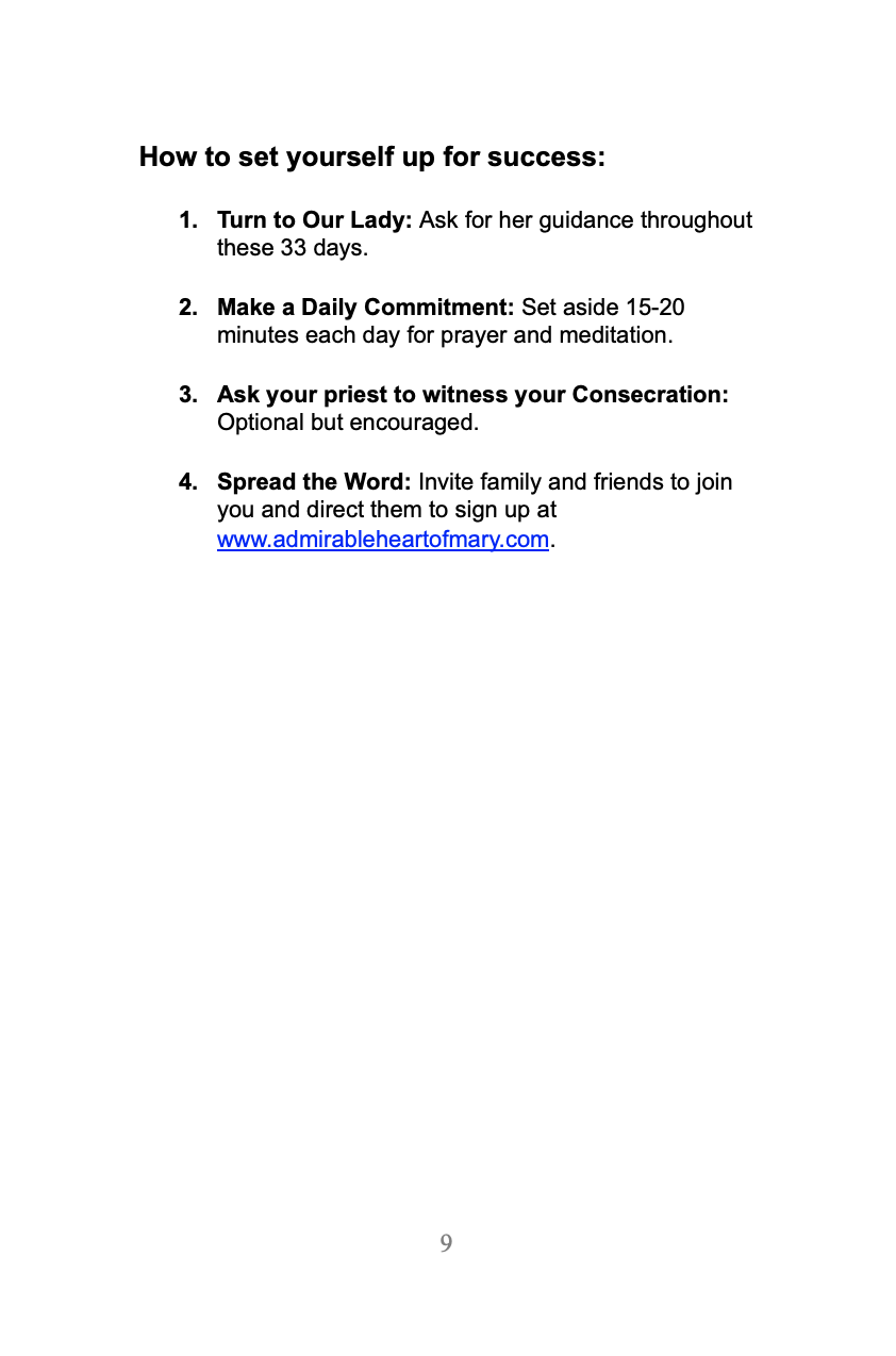 Marian Boutique 33 Day Preparation for Total Consecration Booklet (Physical Copy) $27.00 Add To Cart Added! Journal for Your 33-Day Preparation for Total Consecration $12.00 Add To Cart Added! Total Consecration Certificate (Digital Download) $10.00 Add To Cart Added! Saint Louis de Montfort’s Method of Receiving Holy Communion – Printable Pamphlet (Digital Download) $10.00 Add To Cart Added! Marian Paper for Writing Your Act of Total Consecration On (Digital Download in Color) $10.00 Add To Cart Added! Marian Paper for Writing Your Act of Total Consecration On (Digital Download in Black and White) $10.00 Add To Cart Added! Have a group of 25 or more? Contact us for special pricing!hello@admirableheartofmary.com